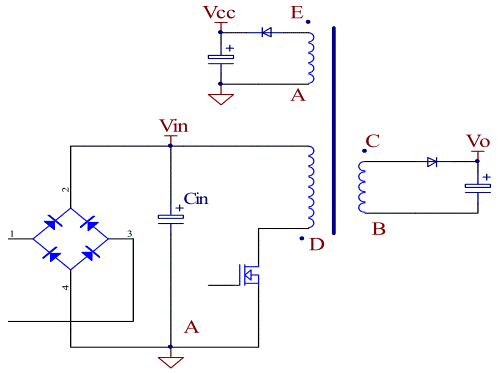 強(qiáng)調(diào):電壓沒有變化的點(diǎn)稱為靜點(diǎn)或冷點(diǎn),電壓變化的點(diǎn)稱為動點(diǎn)或熱點(diǎn)。初級的地和Vin都是冷點(diǎn),對于輔助繞組和輸出繞組,冷點(diǎn)可以通過二極管的位置進(jìn)行調(diào)整。圖18中,A,B和Vin為冷點(diǎn),F(xiàn), D,B和C為熱點(diǎn);而圖5中,A,Vcc,Vin和Vo為冷點(diǎn),D,F(xiàn)和G 為熱點(diǎn)。
