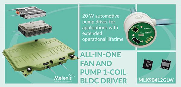 “能夠為全面的 20W 水泵產(chǎn)品組合提供多功能的一站式解決方案,我們深感自豪。MLX90412GLW 是一款具有前瞻性的產(chǎn)品,滿足具有挑戰(zhàn)性的使用壽命需求,例如電動汽車中的電池冷卻,”Melexis 的智能驅(qū)動器產(chǎn)品線經(jīng)理 Dirk Leman 表示!斑@款芯片可節(jié)省空間,降低 BOM 成本,同時縮短開發(fā)時間! |