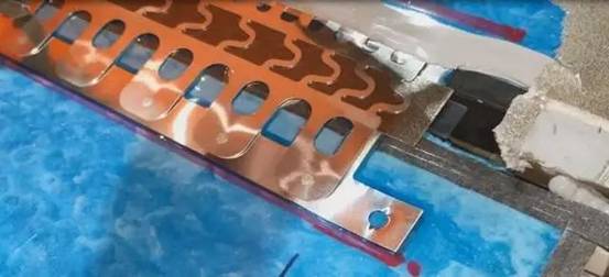 圖2 特斯拉在模組邊沿母線的處理(上面蓋了絕緣層)