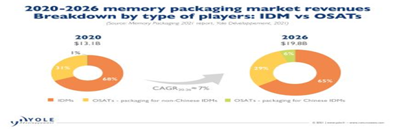▲ 2020-2026 年存儲(chǔ)封裝市場收入分類:IDM vs OSAT
