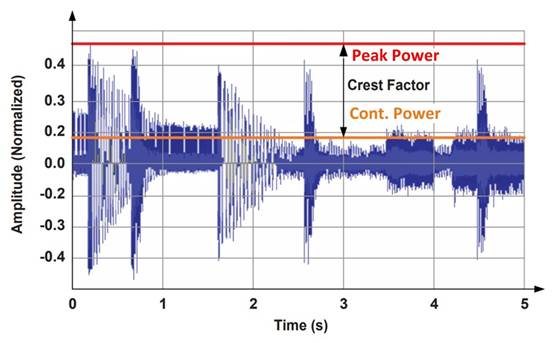 圖1 此圖顯示了連續(xù)和峰值功率音頻電平。