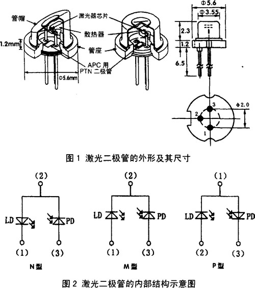 激光二極管的外形及尺寸如圖1所示。其內(nèi)部結(jié)構(gòu)類型有三種,如圖2所示。