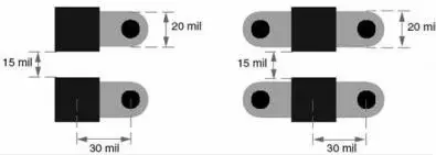 由于印制線越寬,電感越小,從焊盤到過(guò)孔的引出線盡量加寬,如果可能,盡量和焊盤寬度相同。這樣即使是0402封裝的電容,你也可以使用20mil寬的引出線。引出線和過(guò)孔安裝如圖4所示,注意圖中的各種尺寸。