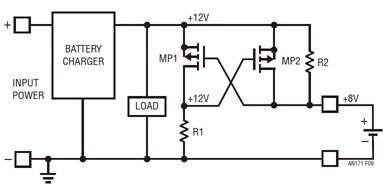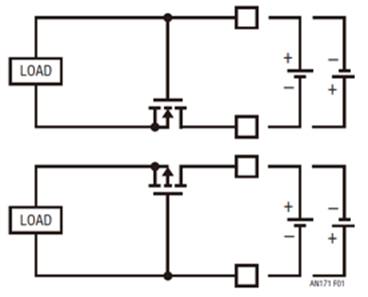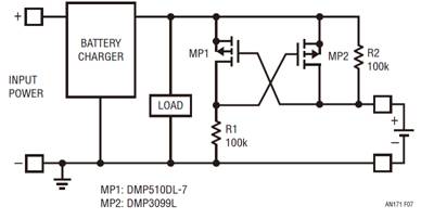 處理電源電壓反轉(zhuǎn)有幾種眾所周知的方法。最明顯的方法是在電源和負(fù)載之間連接一個(gè)二極管,但是由于二極管正向電壓的原因,這種做法會(huì)產(chǎn)生額外的功耗。雖然該方法很簡潔,但是二極管在便攜式或備份應(yīng)用中是不起作用的,因?yàn)殡姵卦诔潆姇r(shí)必須吸收電流,而在不充電時(shí)則須供應(yīng)電流。
