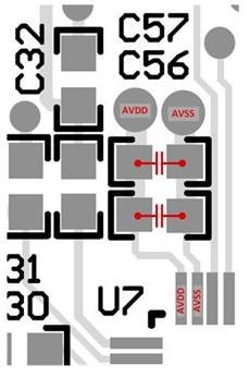 把附加的較小或“局部”去耦電容器(通常電容不超過(guò)1μF)放置得最接近ADC電源引腳處,以幫助過(guò)濾掉沿途發(fā)現(xiàn)的任何噪聲。使用兩個(gè)并聯(lián)的局部去耦電容器(即電容為1μF的去耦電容器和電容為100nF的去耦電容器)將能在更大的頻率范圍內(nèi)提供低阻抗。