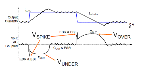 下文圖4所示為每個(gè)輸出電容元件對(duì)降壓轉(zhuǎn)換器負(fù)載瞬態(tài)性能的作用機(jī)制