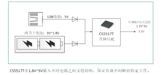 深圳市永阜康科技有限公司針對(duì)單節(jié)鋰電池、磷酸鐵鋰電池及2-3節(jié)干電池供電的移動(dòng)設(shè)備應(yīng)用需求,現(xiàn)在大力推廣一顆具備8uA超低靜態(tài)電流、600mA輸出的DC-DC升降壓IC-CS5517T,專用于便攜式電子產(chǎn)品。該器件支持1.8V至5.0V電池供電,可調(diào)輸出電壓范圍1.2V至5.0V,最大輸出電流可達(dá)500mA;因?yàn)殡S著電池的放電,電壓是會(huì)下降的,使用該芯片,就能夠提高電池的效率,盡可能的榨干電池電量,可延長(zhǎng)紐扣電池、鋰電池和多串聯(lián)堿性電池組供電的智能物聯(lián)網(wǎng)設(shè)備電池使用壽命。