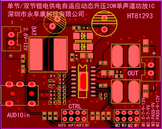 深圳市永阜康科技有限公司順應(yīng)拉桿音箱以及藍(lán)牙小音箱市場(chǎng)音質(zhì)功率升級(jí)的需求,推廣一款單節(jié)雙節(jié)鋰電供電內(nèi)置自適應(yīng)動(dòng)態(tài)升壓20W單聲道D類(lèi)功放IC-HT81293。采用最新的BCD工藝,內(nèi)部Boost模塊升壓至12V,已經(jīng)與鉛酸電池/三節(jié)串聯(lián)鋰電池的電壓持平,實(shí)現(xiàn)了單節(jié)鋰電供電極致功率輸出。