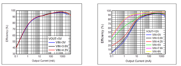 3. 在Vin=3.3V,Vout=9V,Iout=2A時(shí)效率高于90%