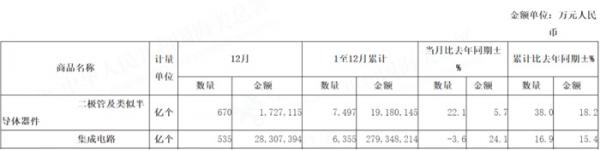 2021 年 1-12 月,我國二極管及類似半導(dǎo)體器件進口 7497 億個,同比增長 38%;金額為 1918 億元人民幣,同比增長 18.2%。