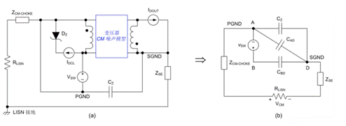 基于雙電容變壓器模型的 CM 噪聲模型的一般推導過程遵循以下六個步驟: