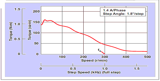 圖 1 雙極恒流步進馬達(dá)的扭矩/速度曲線
