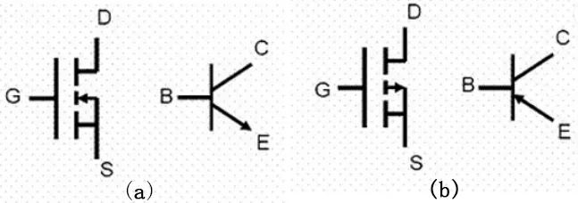 1、場效應管的源極S、柵極G、漏極D分別對應于三極管的發(fā)射極e、基極b、集電極c,它們的作用相似,圖5(a)所示是N溝道MOS管和NPN型晶體三極管引腳,(b)所示是P溝道MOS管和PNP型晶體三極管引腳對應圖。