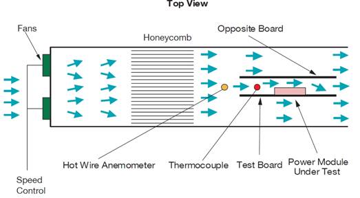 圖 1:表征 DC-DC 轉(zhuǎn)換器溫度降額特性的測(cè)試設(shè)置。(來(lái)源:Flex Power Modules )