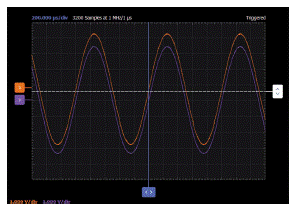 示波器的通道1應(yīng)連接為顯示第一發(fā)生器的輸出,兩個(gè)通道(1和2)均應(yīng)設(shè)置為以每格1