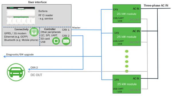 電動汽車直流快充標準的演進,很顯然會給充電樁的開發(fā)提出新的挑戰(zhàn),這主要體現(xiàn)在兩個方面:一是產(chǎn)品和方案的架構(gòu)需要能夠適應不同標準、不同功率等級的要求;二是要有可擴展性,能夠跟上標準“升級”的步伐。也就是說,設計方案需要有足夠的靈活性。