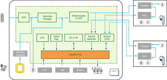 WS49T31xQ系列基于Arm® Cortex®-M3內(nèi)核,主頻達(dá)到120MHz,最大可提供1MB Flash存儲(chǔ)空間,96KB SRAM。很多應(yīng)用場(chǎng)景要求有足夠的memory空間,以TWS耳機(jī)應(yīng)用為例,中高端產(chǎn)品在日常使用上往往感覺(jué)更友好,原因之一是充電盒內(nèi)的MCU運(yùn)行了OS,可以實(shí)時(shí)應(yīng)對(duì)多種任務(wù)。此外,中高端TWS耳機(jī)普遍要支持耳機(jī)和耳機(jī)盒固件升級(jí)功能,讓消費(fèi)者使用無(wú)憂,也提升了對(duì)產(chǎn)品的滿足感。這些都對(duì)MCU配置有較高的要求,8位MCU是難以勝任的。