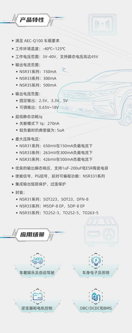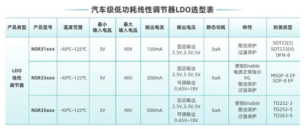 超低靜態(tài)功耗LDO!納芯微推出業(yè)界領(lǐng)先車規(guī)級NSR31/33/35系列芯片