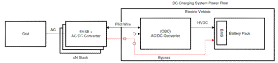 圖2為直流充電樁的典型框圖?紤]到將轉(zhuǎn)換器堆放在車內(nèi)會(huì)使車輛變得笨重,因此,這些堆疊式變流器常被放置在車輛外部,成為電動(dòng)汽車充電樁的組成部分。充電樁通過車載充電器與車輛蓄電池直接連接。直流充電樁是一個(gè)L3充電器,可滿足120至240kW范圍內(nèi)的極高功率。L3充電器通常在30分鐘內(nèi)將電池充電至80%的荷電狀態(tài)(SoC)。為了實(shí)現(xiàn)這種高功率水平,TI使用了可堆疊的模塊化電源轉(zhuǎn)換器。