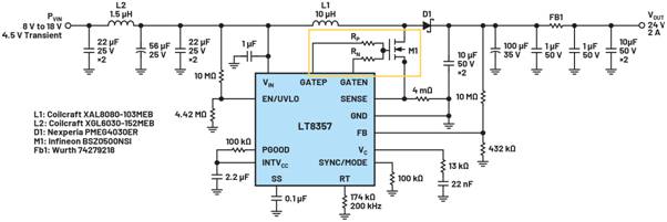 圖7.LT8357高壓升壓控制器具有分立式門引腳,