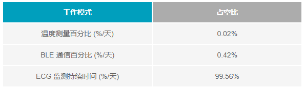 在本文中,我們將參考圖1所示的ECG RPM貼片示例。該貼片可連續(xù)監(jiān)測ECG和加速計,同時每15分鐘檢查一次溫度。數(shù)據(jù)通過低能耗藍牙®(BLE)每2小時傳輸一次,每天總共進行12次BLE傳輸。該貼片有三種不同的模式,每種模式都有不同的負載模式:標(biāo)準(zhǔn)監(jiān)測、溫度監(jiān)測和傳輸模式。在標(biāo)準(zhǔn)監(jiān)測模式下,僅監(jiān)控ECG和加速計。在溫度監(jiān)測模式下,還要監(jiān)測另一個溫度傳感器。在傳輸模式下,BLE無線電在同時監(jiān)測ECG和加速計數(shù)據(jù)的同時傳輸數(shù)據(jù)。