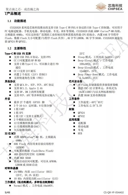 芯海科技CS32G020是芯?萍纪瞥龅闹С諹SB Type-C和USB PD3.0協(xié)議的USB Type-C控制器,內(nèi)置ARM M0內(nèi)核,48MHz主頻,內(nèi)置64K程序存儲器,4KB LDROM,8K SRAM,支持寬范圍的工業(yè)控制應(yīng)用和高性能處理場景,提供QFN24和QFN32封裝,適用于PC電源適配器、手機(jī)快充充電器、大功率移動電源、車充、USB HUB等領(lǐng)域。