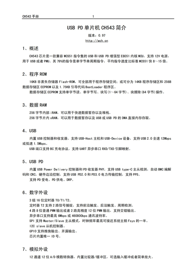 沁恒微CH543 芯片是一款兼容 MCS51 指令集的 USB 和 USB PD 增強(qiáng)型 E8051 內(nèi)核 MCU,支持 12V 電源, 用于 USB 或者 PMU。其 79%的指令是單字節(jié)單周期指令,平均指令速度比標(biāo)準(zhǔn) MCS51 快 8~15 倍。