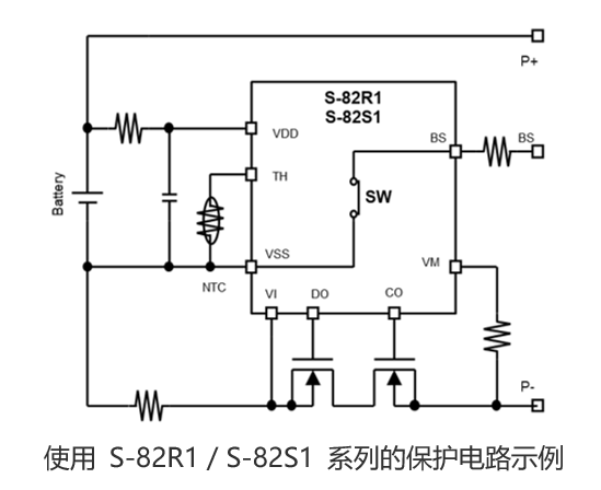 今天發(fā)布的新產(chǎn)品S-82R1/S-82S1系列是一款帶有電池電壓監(jiān)視端子(BS端子)的單節(jié)鋰離子電池保護(hù)IC,具備以下特點(diǎn):