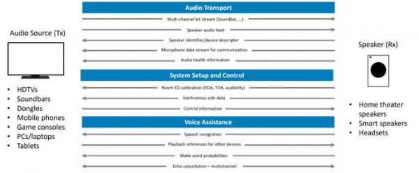 WiSA的傳輸層技術(shù)可管理音頻流、控制數(shù)據(jù)、系統(tǒng)設(shè)置和語(yǔ)音輔助