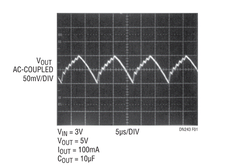 圖2:LTC3200-5的輸出紋波。