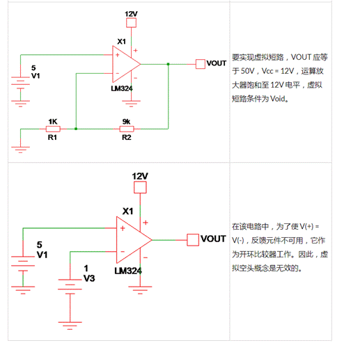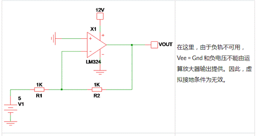 在某些閉環(huán)條件下,當輸出匹配限制超過運算放大器 Vcc 和 Vee 電源范圍時,虛擬接地和虛擬短路概念也將失效。