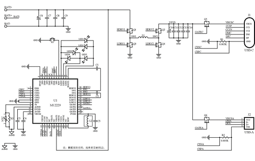 水芯 M12229 典型應用電路如上圖所示,芯片采用 QFN48 7×7mm 0.5mm pitch 封裝,提供I2C接口,可以外接單片機進行功能修改;內置環(huán)路補償電路,內置16-bit高精度ADC,內置 USB Type-C 接口控制,集成 LED 電量顯示和快充指示。