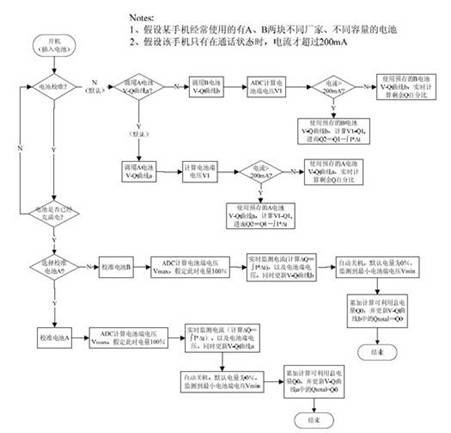 插入電池(開機)→→是否電池校準(zhǔn)(默認(rèn)否)→→否→→調(diào)用電池容量曲線a(默認(rèn))(若使用電池B,則修改為使用電池容量曲線b)→→通過電池端電池Vcc以及監(jiān)測耗電量聯(lián)合評估剩余電量百分比。