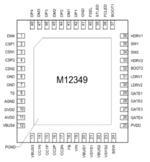 M12349是一款面向大功率快充應(yīng)用的電源管理 SOC,集成了微處理器、升降壓變換器、快充協(xié)議控制器,支持 PD3.1、QC3.0、SCP、FCP、AFC、BC1.2 DCP等全部主流快充協(xié)議,結(jié)合少量元件即可組成單C口的140W大功率快充解決方案;輔以DC-DC芯片,還可擴(kuò)展為雙路獨(dú)立的C+CAA多口大功率快充解決方案。采用QFN-48封裝
