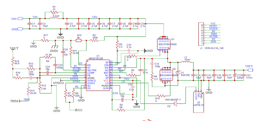 MK9218(100V高電壓輸入30A外置MOS大電流同步降壓DC-DC控制器IC)
