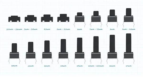 圖3:觸摸開關(guān)的常見致動器高度(圖片來源:CUI Devices)