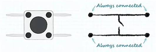 大多數(shù)觸摸開關(guān)包含四個引腳,用于在PCB上安裝期間起穩(wěn)定作用。這四個引腳內(nèi)部連接成兩組。雖然從技術(shù)上講,只有兩根導線需要用于布線,但最佳做法是使用所有可能的引腳。此外,有些觸摸開關(guān)只有兩個可用引腳,也有5引腳版本,這種版本可在非常小的封裝中實現(xiàn)類似操縱桿的控制功能。