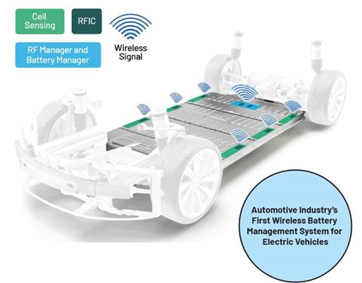 圖1.使用無(wú)線電池管理系統(tǒng)(wBMS)的電動(dòng)汽車