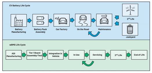 圖2.電動(dòng)汽車電池生命周期及其相關(guān)的wBMS生命周期