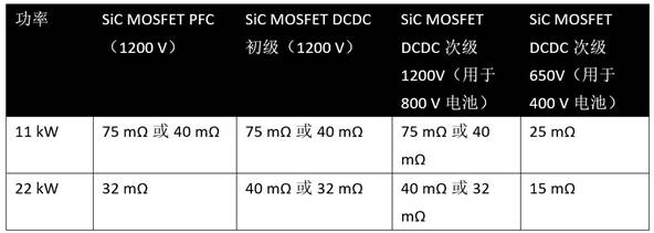 表3:11kW和22kW雙向OBC的MOSFET選擇