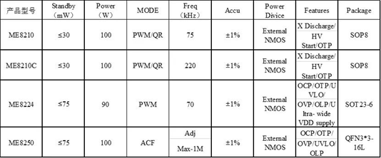 針對(duì)手機(jī)、筆記本電腦和平板電腦等設(shè)備充電器產(chǎn)品,上海貝嶺可以提供初級(jí)測驅(qū)動(dòng)主控IC(南京微盟系列產(chǎn)品),產(chǎn)品如下表1所示。