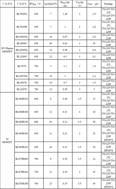 前級(jí)高壓 MOSFET產(chǎn)品