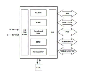圖 2:CSR BlueCore5 系列等集成多媒體 SoC 將藍(lán)牙無線電功能與無線音頻應(yīng)用中使用的廣泛片上處理功能相結(jié)合。(由 CSR 提供。)