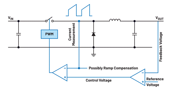 圖1. 電流模式穩(wěn)壓器的基本工作原理。