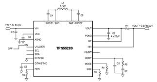 同樣,TPS55289也適用于無線充電,下圖是該應用的示例框圖。TPS55289的頻率能夠達到2MHz,使得開發(fā)者可以使用更小的外圍器件完成設計,從而減小整體解決方案的尺寸,并且節(jié)省BOM成本。此外TPS55289支持I2C協議,可以通過I2C調節(jié)輸出電壓。
