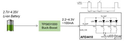 首先,TPS631000的基本參數(shù)(TPS631000數(shù)據(jù)表)可以滿足該應(yīng)用的需求,當(dāng)輸入電壓近似等于輸出電壓時(shí),TPS631000 會(huì)自動(dòng)以升壓、降壓或 3 周期降壓/升壓模式運(yùn)行。它還能夠以定義的占空比進(jìn)行模式切換,避免不必要的模式內(nèi)切換,以減少輸出電壓紋波。生物傳感模塊一般不會(huì)持續(xù)工作,多數(shù)設(shè)計(jì)是間隔一定時(shí)間運(yùn)行一次,因此,大部分時(shí)間該模塊會(huì)處于待機(jī)狀態(tài),TPS631000的靜態(tài)電流僅為8 µA,因此可在輕載條件下實(shí)現(xiàn)出色效率,最大限度減少不必要的電能損耗以延長(zhǎng)待機(jī)時(shí)間。此外,TPS631000提供小尺寸解決方案,采用 1.2mm × 2.1mm SOT-583 封裝、一個(gè) 1µH 電感器和一個(gè) 0805 輸出電容器,方便開(kāi)發(fā)者實(shí)現(xiàn)小型化設(shè)計(jì)。