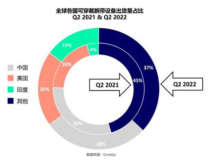 在健康觀念深入人心及消費升級的雙重影響下,智能可穿戴設備的市場需求持續(xù)增長,智能藍牙手環(huán)便是其中熱門方向之一。根據(jù)Canalys數(shù)據(jù)顯示,2022年Q2全球可穿戴腕帶的出貨量達到4170萬臺,其中中國市場銷量全球第一。