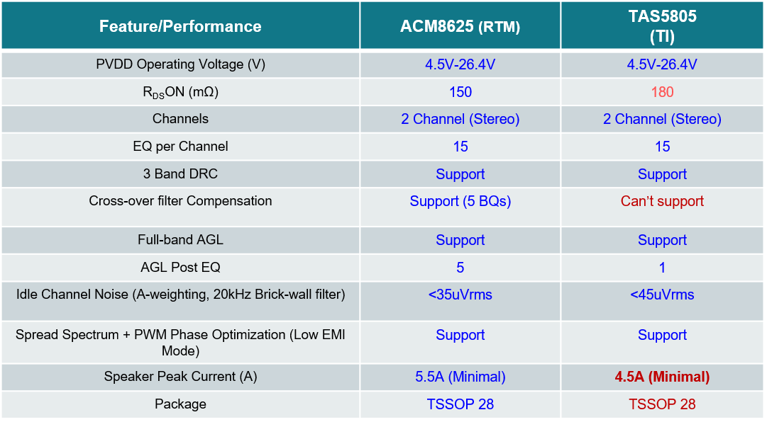TAS5805和ACM8625在性能方面的比較