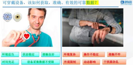 在醫(yī)院里心電儀檢測的環(huán)境是很理想的,而可穿戴產(chǎn)品領域對電子設備的要求比醫(yī)院還要高。如手表戴得是否牢固,周圍環(huán)境是否有很多電磁干擾等等,這些對可穿戴設備都是不利的。自1965年ADI成立以來,一直都在專注于混合信號處理等技術,在數(shù)據(jù)轉換、模擬/數(shù)字信號處理上都有很深厚的積淀,使得ADI芯片和方案,可以在最大程度上,從系統(tǒng)層面解決這些問題。