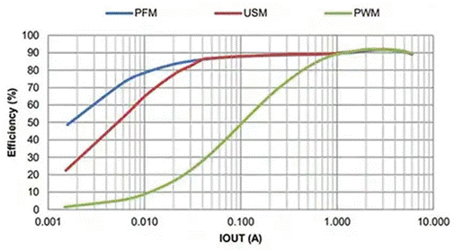 圖5:AP62600為設(shè)計(jì)者提供了三種工作模式選擇,以滿足個(gè)性化應(yīng)用的需求:PFM、USM和PWM。(圖片來源:Diodes, Inc.)